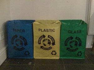 The system I use to hold our recycling is shown in the picture below (taken after catching up with the backlog of recycling). Before I bought these bags I just used to stack everything up in the corner of the kitchen or throw bottles, packaging etc in an ugly brown cardboard box. One of the benefits of the recycling bags is that you can either clip the bags together or just store them separately. They also have handles so are easy to carry to the car or recycling bins. The colours are a bit bold but I think you can get more neutral ones. They’ll do for now; I like having a designated place for things and it’s clear to everyone else where the recycling goes.
