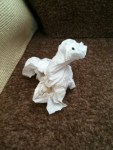 Sometimes rubbish on the floor can turn into something interesting to photograph. I glanced over at the other side of the room today and spotted a screwed up tissue in the shape of a dog. I asked one of my daughters to grab a black felt tip pen and photographed him at the various stages of his evolvement. It kept the children entertained for a while as well.