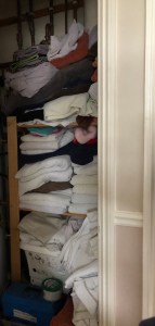 No chance of stacking them tidily on a shelf in there unless I get rid of some sheets and towels. I’ll save that joy for another day!