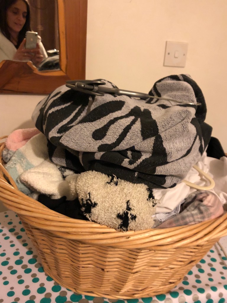 Being late in the evening again and having had a long and busy day, I needed something quick to declutter. Then I spotted it: ‘the extra basket of washing’ that keeps being moved from ironing board to bed in the morning, and vice versa in the evening. I set my timer for ten minutes and took a photo…