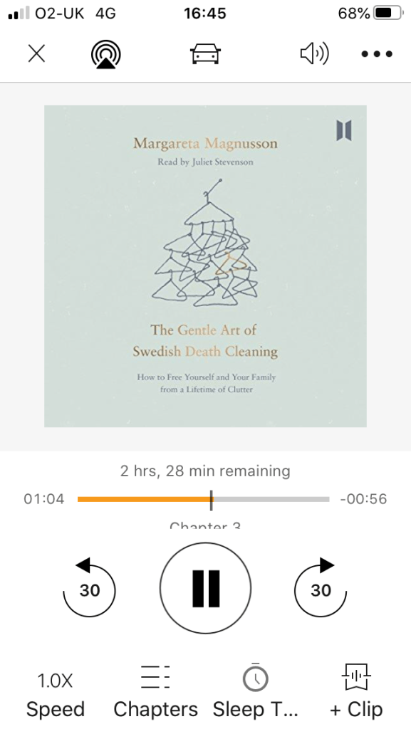 She goes on to explain that you should start with the large items which is an interesting concept. Deep down I knew that the smaller items carry a lot of weight, such as cards, photos etc. I’m certainly not ready to go through those yet.