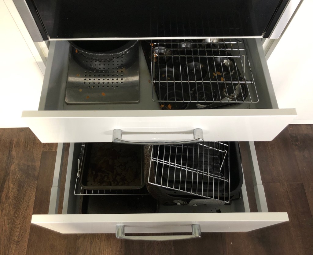 This morning after breakfast I emptied the dishwasher. As I was putting away the baking trays, I made a decision to focus on just two drawers as part of my decluttering challenge. The two below the ovens seemed appropriate because I was struggling to get the trays in.