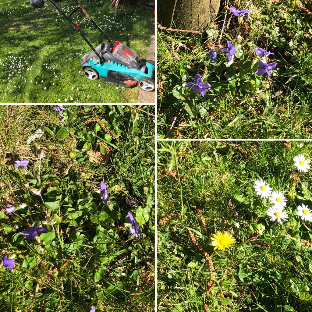 Oops, not sure if my wildflower seeds blew all over the garden when I planted them in the borders a few weeks ago (as there’s nothing growing in the borders yet… might be wrong). Although I knew that they were probably weeds, they looked pretty on the lawn but it was time to mow them away. It didn’t take long and then I sat outside for a while before work.