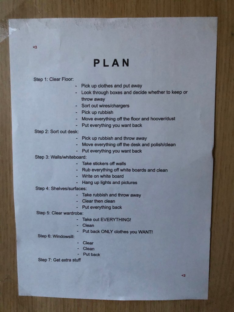 Today she completed step 1 and felt so happy with her progress. I’ve been working all day so was really surprised when she called me upstairs to show me what she’d done. Her floor was clear and clean making the room feel a lot more spacious.