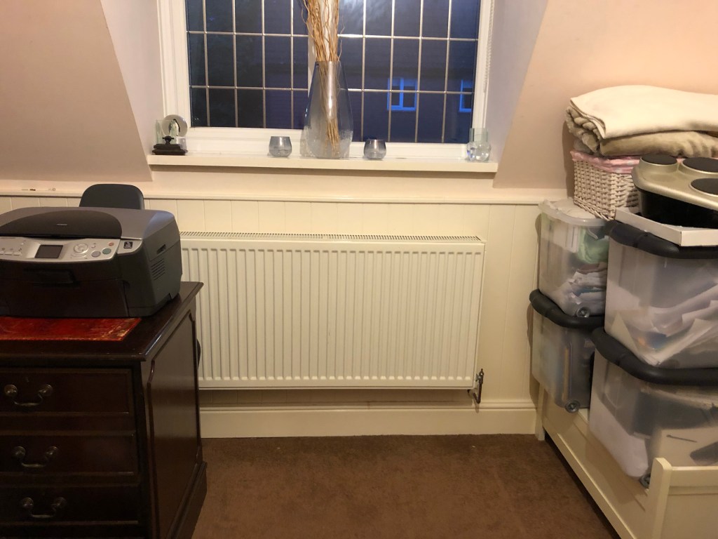 Once everything was out of the way, I decluttered and wiped down the windowsill and could actually get to the window. I think that my husband must have been struggling to open this window while he’s been working. My daughter came into the room just as I had finishing and commented on how clear that side of the room looked and that she hadn’t seen the radiator in ages!