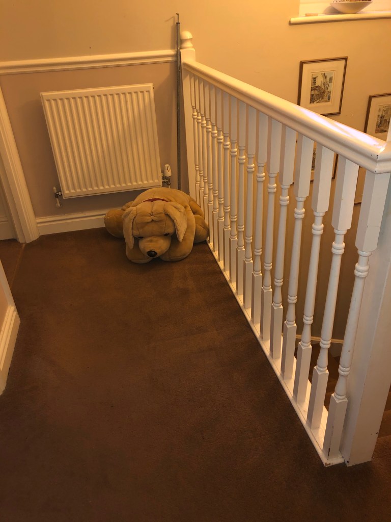 As we’d moved the rocking horse, I decided to clear some other clutter from the upstairs hallway which comprised of recycling, a basket of washing and other random items. I also vacuumed the carpet.