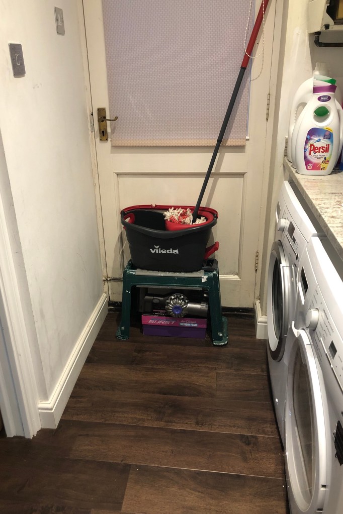 I didn’t take a ‘before’ photo of the utility room floor because I thought I’d taken one the other day when I cleared the counter top, but if you imagine it all messy… well, now it looks like this.