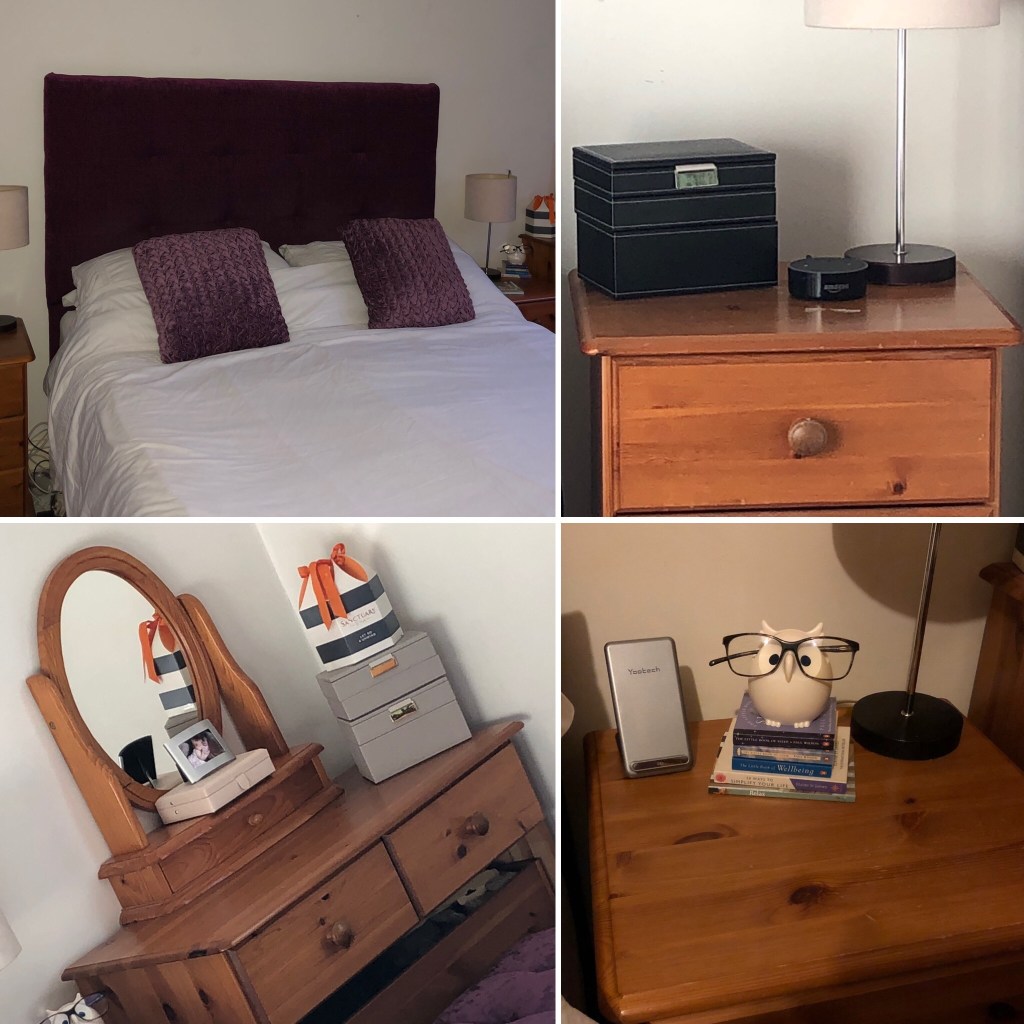 I walked into to our bedroom and saw the mess that had been piling up for a couple of months. I suddenly had a vision of how I could make a couple of changes and stop the clutter build up and I felt instantly motivated. I just needed to move the baskets of clothes, washing and other stuff that didn’t really have a home. It was getting difficult to get into bed at night and walk around the room. I saw it as a decluttering task that could be broken down into 2 steps – first step was easy, (perfect for today) and second step was difficult (for another day).