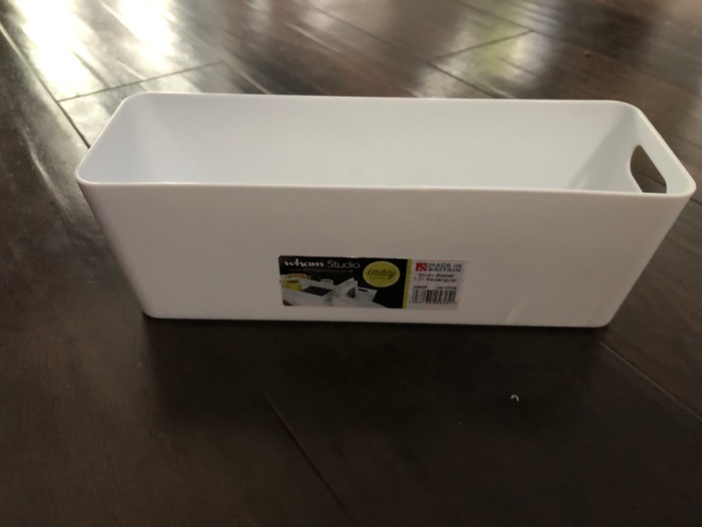 I heard about these Wham plastic trays recently and bought a few for the bathrooms to make it easier to clean around the bottles and sprays that sit around.
