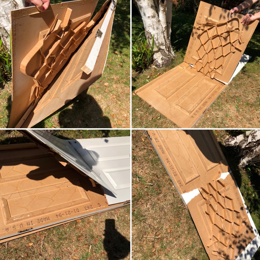 In yesterday’s post I mentioned that I’d left a door in the garden that needed to be thrown away. Today my husband took it apart to show me that it’s just cardboard inside. I hadn’t realised that our doors were so flimsy.