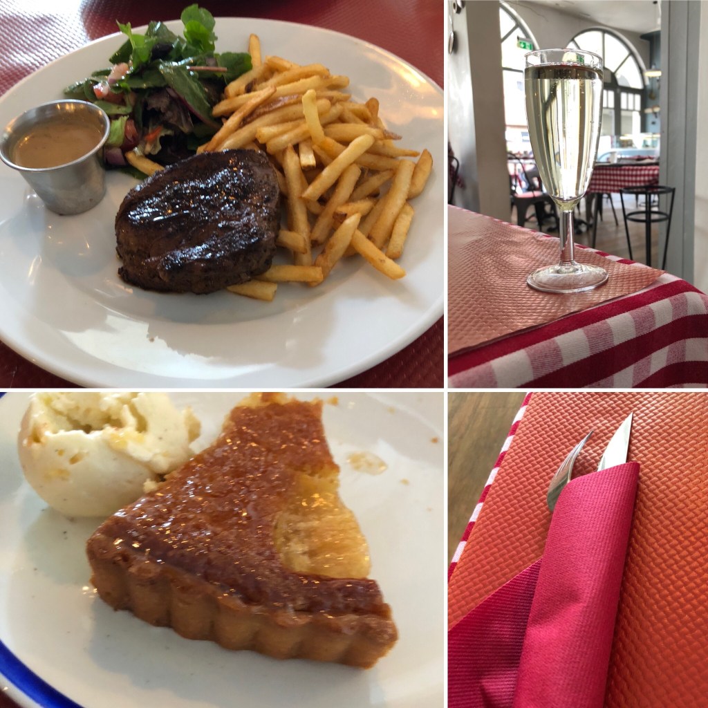 We ate at one of our favourite restaurants Frédéric Bistro this afternoon. I was really looking forward to it as we haven’t eaten out for almost five months. The tables were nicely spread out and the place was lovely and airy. I had a glass of prosecco, fillet steak with peppercorn sauce and fries. For dessert I had the pear tart (which I asked to be warmed up, yum) and ice cream. It tasted as good as we remembered it. We were also able to take advantage of the 50% off government scheme that started in most restaurants today.