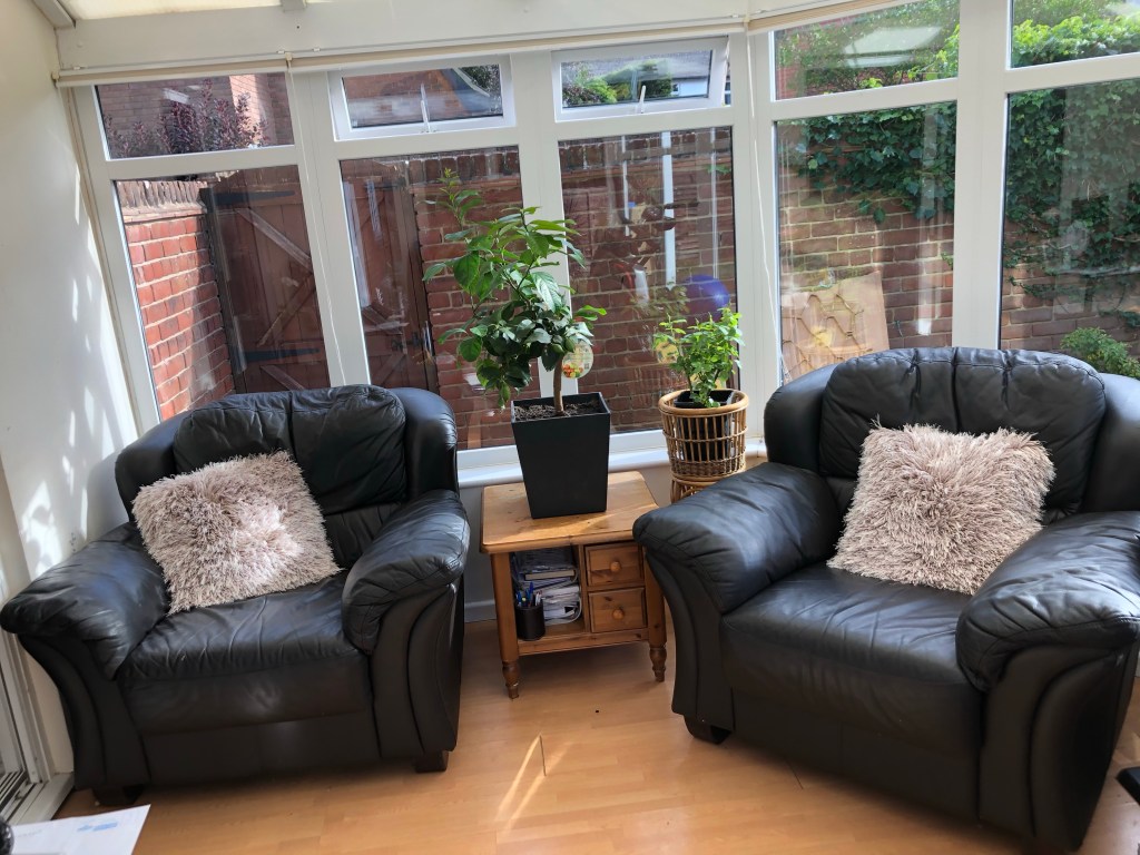 No one really likes this layout but there’s only one other way, which is to put the table to the left. There’s still one other item I can move out of the conservatory which I will do if that’s the only way that we can make it feel comfortable for everyone. The clutter has also started to build up in the parts of the room that you can’t see, but I’m going to work on that over the next few days. I’m just grateful for the lovely space where I can sit and just think when I’m not working.
