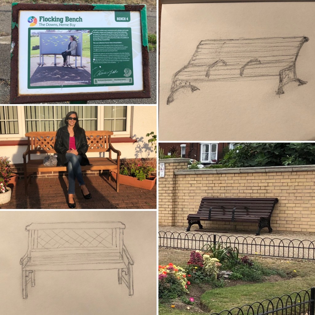 After my daughter left the room, I set a timer for my usual 24 minutes. My mind kept thinking about the benches I saw in Herne Bay yesterday as well as the one I sat on in my mum and dad’s garden. I felt drawn to sketching again.