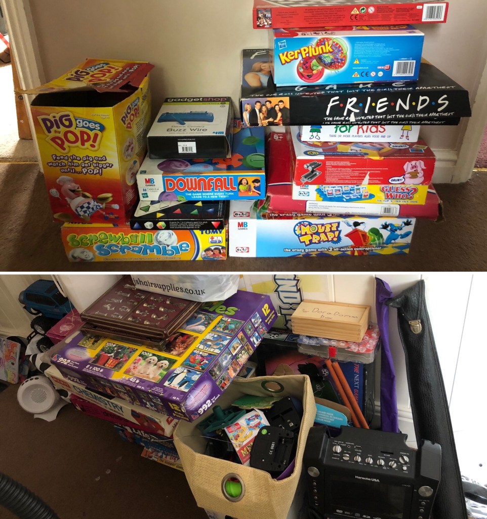 I asked my daughters to help decide what games to get rid of but they got distracted by the first game they saw – Kerplunk. I did struggle to get their attention after that but we did make some decisions together. The picture below is the pile I’ve left them to play over the next week to see if they still like/want them and a stash of unwanted games etc. that I need to put in the garage.
