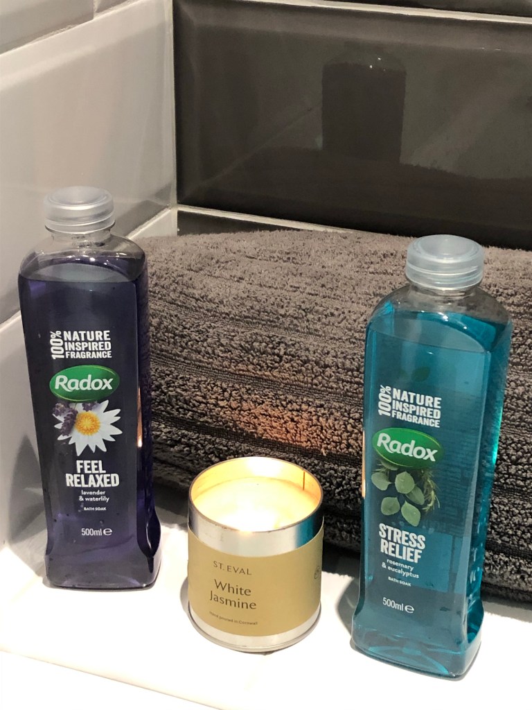 This gave me the idea of running a bath, lighting a candle and taking that me time that I’ve struggled to find over the last few days.