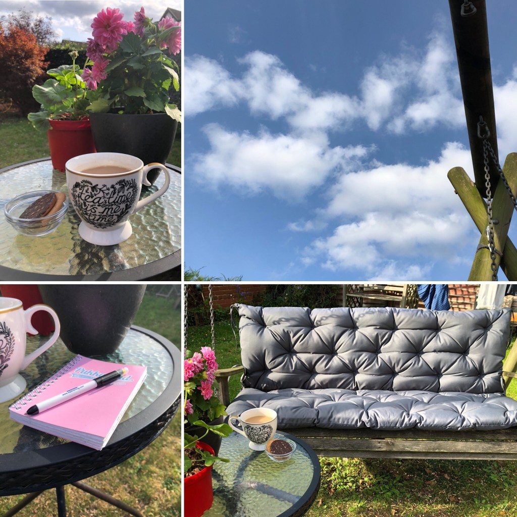 I wrote four self-care type things on my list today that I wanted to fit in. One of them was ‘have breaks’. This afternoon, after having tea and biscuits, I laid down on the swing seat staring up at the sky, listening to calming music, and had my afternoon nap.