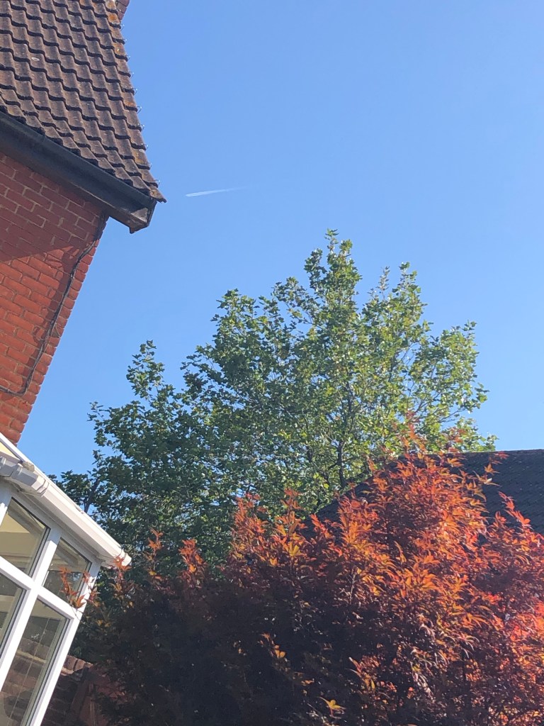 I enjoyed regular breaks throughout the day and at lunchtime I ate my lunch on the swing seat in the garden. The sun was so hot (not complaining, it’s lovely) and the music I chose from a random search on Apple Music was mesmerising and peaceful. I stared up at the lonely aeroplane in the sky (did you spot it in the picture above?) and wondered where those passengers were going.