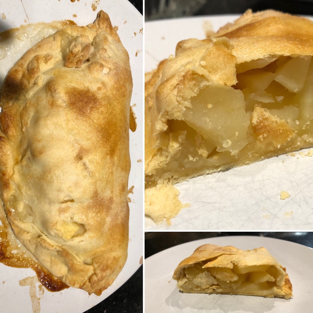 Just had to heat up leftover meat pie from yesterday which was easy. With the small remaining bit of pastry, I made an apple pie turnover (that’s what I called it anyway).