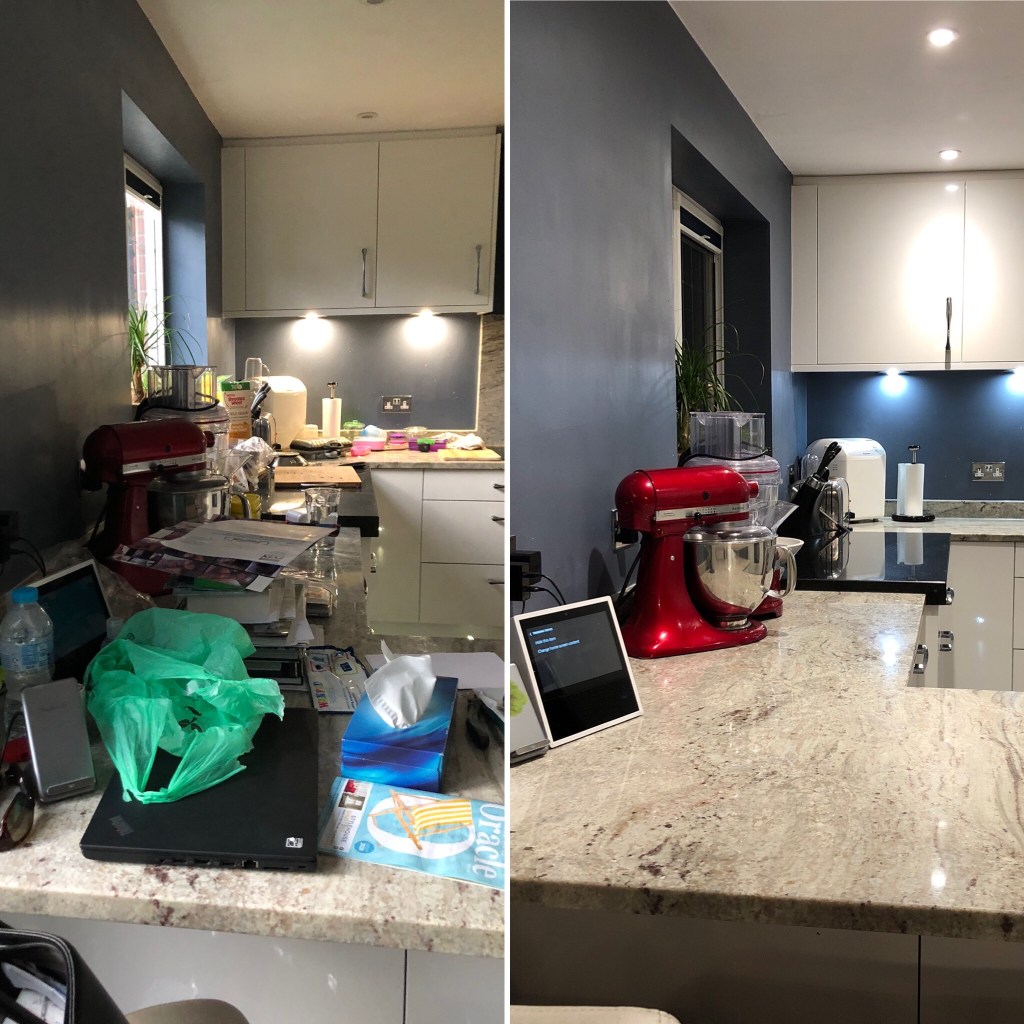 I knew that I didn’t have time to do this today as I had to work, so I just set myself a small goal by the end of today to clear half of the counter tops.