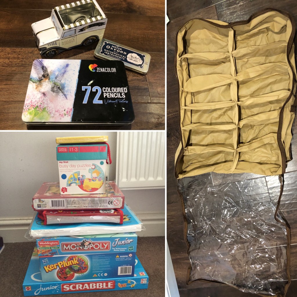 - The shoe organiser with the broken zip, that I thought I could make use of, also went into the bin. I tried to put stuff in it without the plastic cover and it just didn’t work.