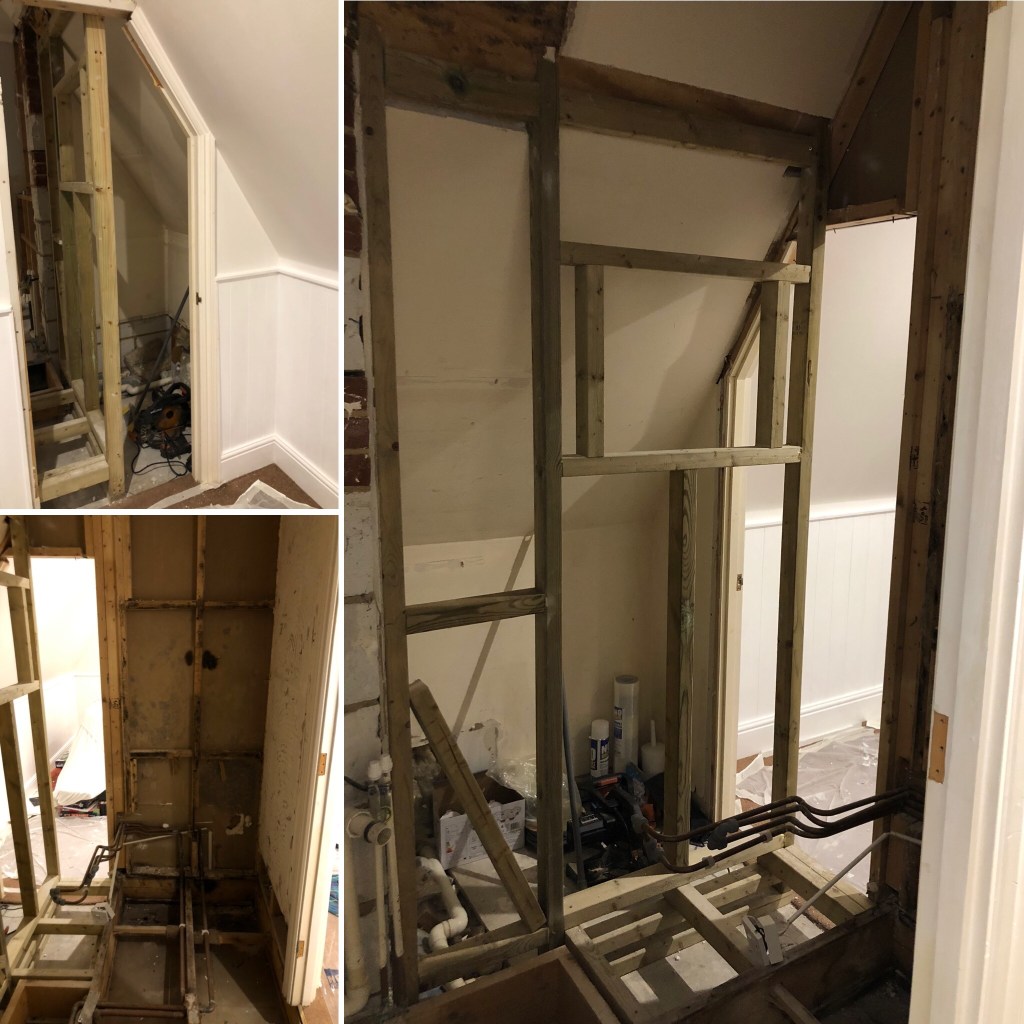 The day has whizzed by today. The plumbers were here again working on knocking out more of the cupboard and creating a structure for the shower wall. They found a lot of damp and said that the shower wasn’t built very well. Whoever had put it in before basically did a bodge job (as they say). Apparently it’s one of the worst built en-suites that they’ve seen.