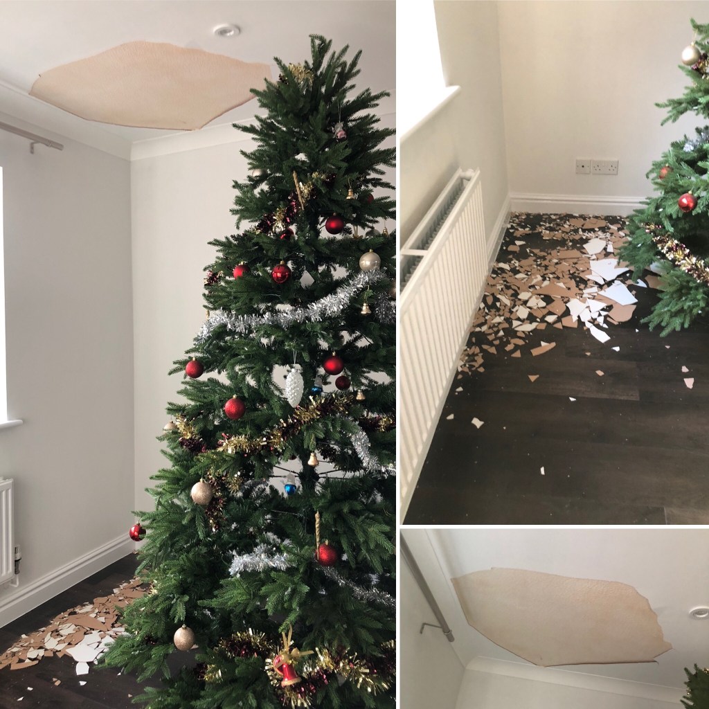 The new plaster had come off the ceiling in the night. Luckily I hadn’t pushed the tree back in its place so only a couple of pieces landed on it. I messaged the plasterer and he’s coming to assess the area and fix it tomorrow which is good of him. We’ll then need it painting again at some point, but I can’t think about that right now as there is too much else going on.