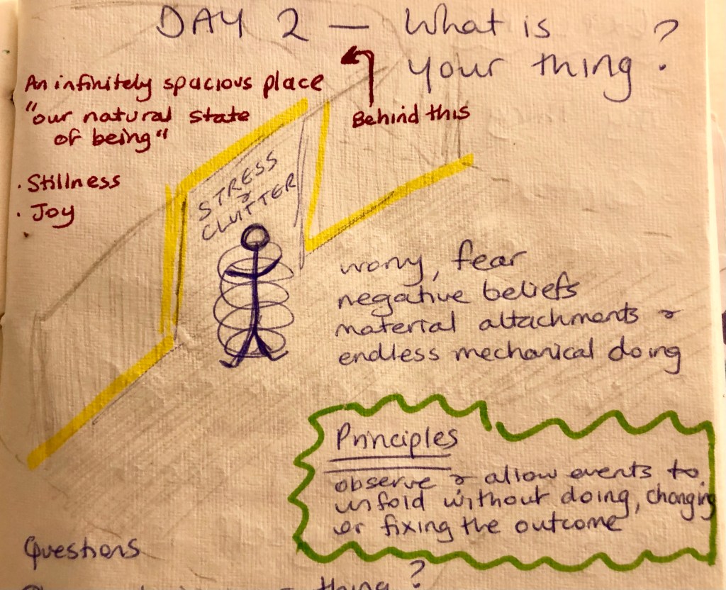 I mentioned Stephanie Bennett Vogt’s book Your Spacious Self quite a few times during my decluttering blogs last year (click here to see the post that sums up my 2020 decluttering challenge). When I discovered that she had two other books I researched which one I should read next and ordered a copy of A Year to Clear. I made a start on this at the beginning of the month and it has been a life changer so far. It’s also achievable to read and absorb the day’s contents as it’s only a half to one page each day. Sometimes I want to read more, but instead I spend that time making notes and draw my interpretation of the day’s message – example below from day 2.